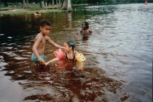 ** Not only did my father get us away from the alligators, would you all check out the above photo and note the inflatable swimmies, and that the hairbow that is sort of color coordinated to match the swimsuit? Good looking out Daddy. Happy Father’s Day.